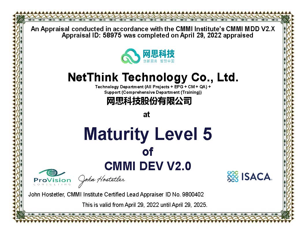 网思科技再次通过 CMMI 5级认证,全球获新版本认证企业仅700余家